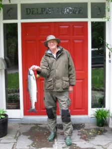 Well, make that both ‘bad’ and ‘lucky’ (see previous post DOWNTIME). Against all reasonable expectations (mine, and everyone else’s I suspect), a rather handsome fresh hatchery salmon just light of 10lbs managed somehow to take a Willie Gunn at the lower end of the Turn Pool (for those that know the river) and make landfall about 15 minutes later. My first river fish at Delphi, and indeed the largest fish I have ever caught. For those who might be alarmed by this turn of news in a nature blog, I should say that by Law all hatchery fish must be taken and all wild fish must of course be returned (as with a 7lb wild fish subsequently taken by rh on Doolough).