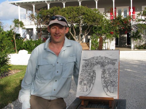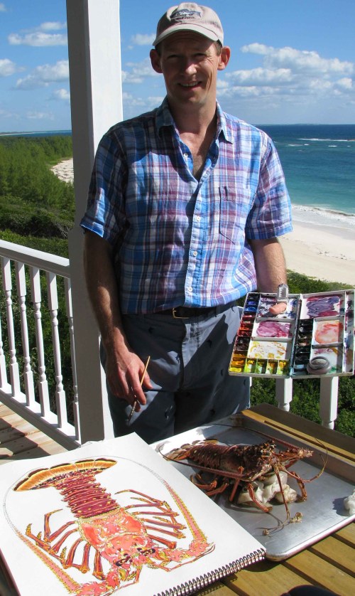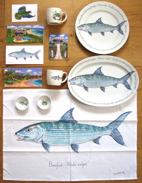 Richard Bramble is a wildlife artist and ceramics designer whose name will be familiar to anyone who has visited the Delphi Club (look, there’s his signed bonefish plate by the main door of the Great Room; and look, more of his work in the gallery ‘Mall’…). Richard will also be well-known to the many who have bought, been given, or simply admired his elegant china pieces or his table-mats. His repertoire of designs is huge – there are fish, birds, animals plants, shells and a lot else besides