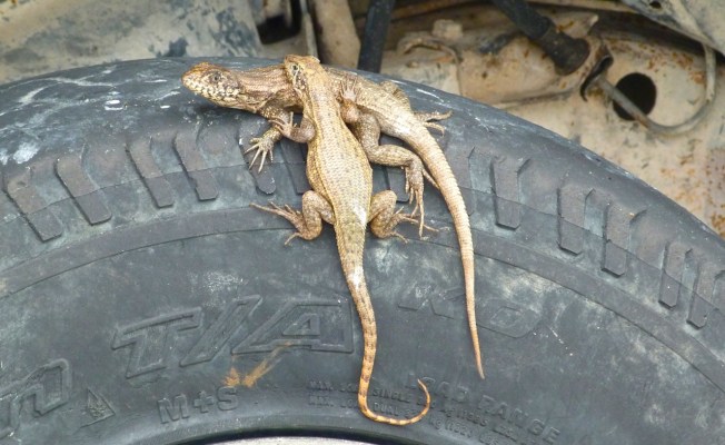 They are lovely creatures – it’s impossible to watch one and not smile… I was very impressed by the “double curly” which I’ve never seen (noticed?) before. And the 2 on the tyre were there embracing tenderly for a full 15 minutes in the sun (after s3x presumably) while we looked for male Bahama Woodstar hummingbirds in the scrub. RH