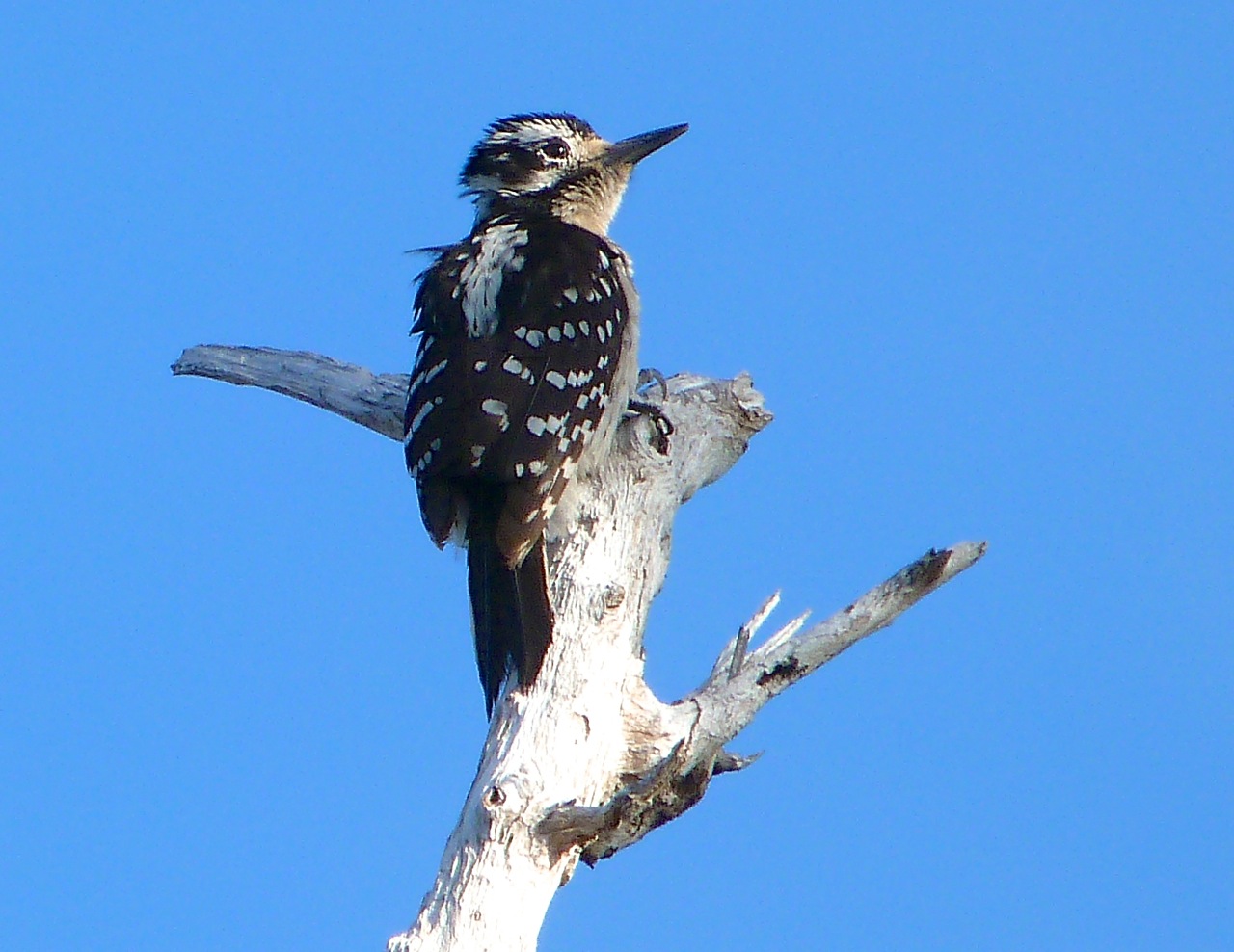 During your stroll, it’s worth checking out the dead trees, especially the upper trunk and branches, as you go. For a start, these provide excellent places for birds to pause and scope out the territory below. They also have a good chance of finding insects there. And for some species, like the Hairy Woodpecker Picoides villosus, it is home.