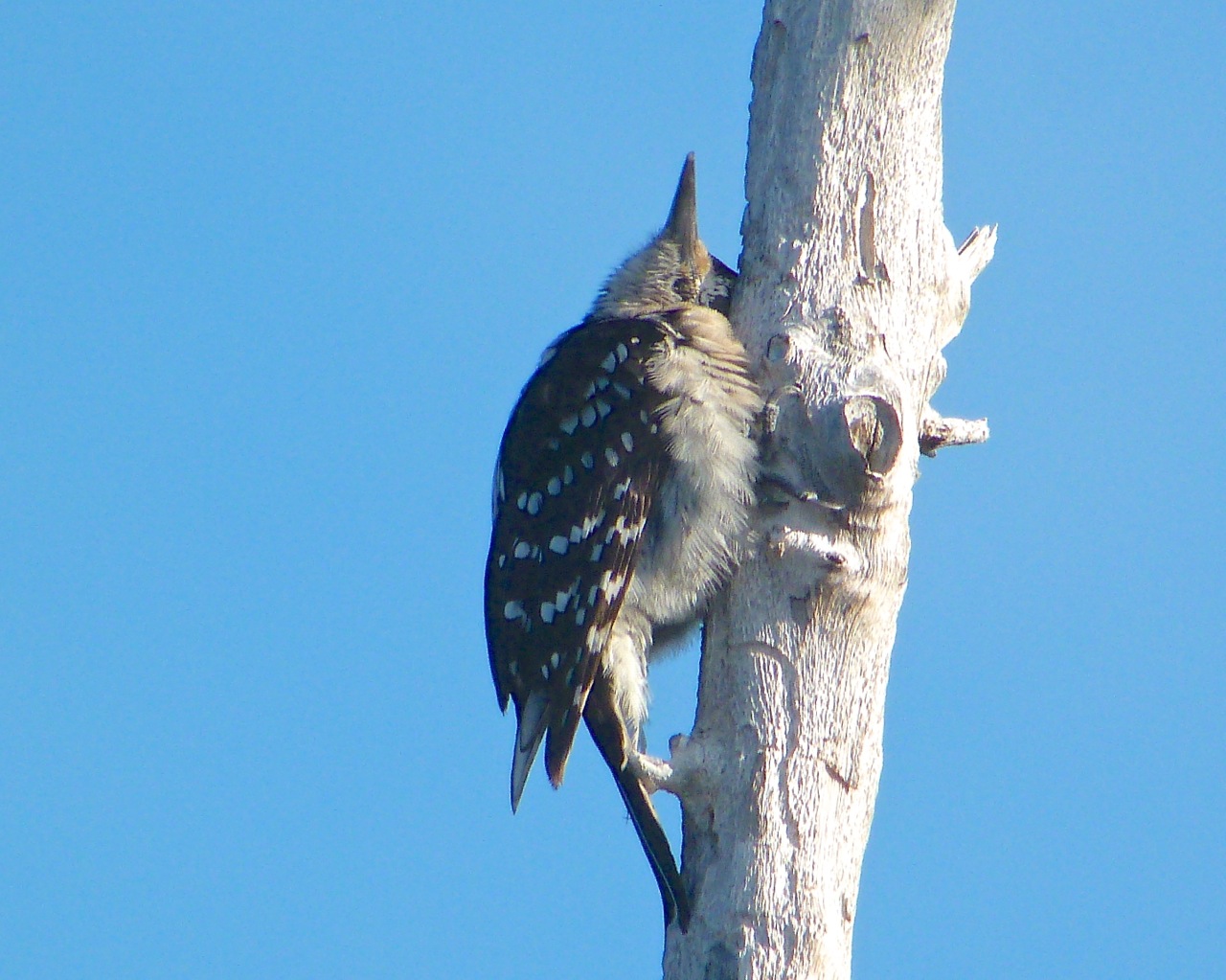 Still scolding, she then started to climb the tree quite slowly, pausing occasionally to fire off some more angry woodpecker abuse at me.