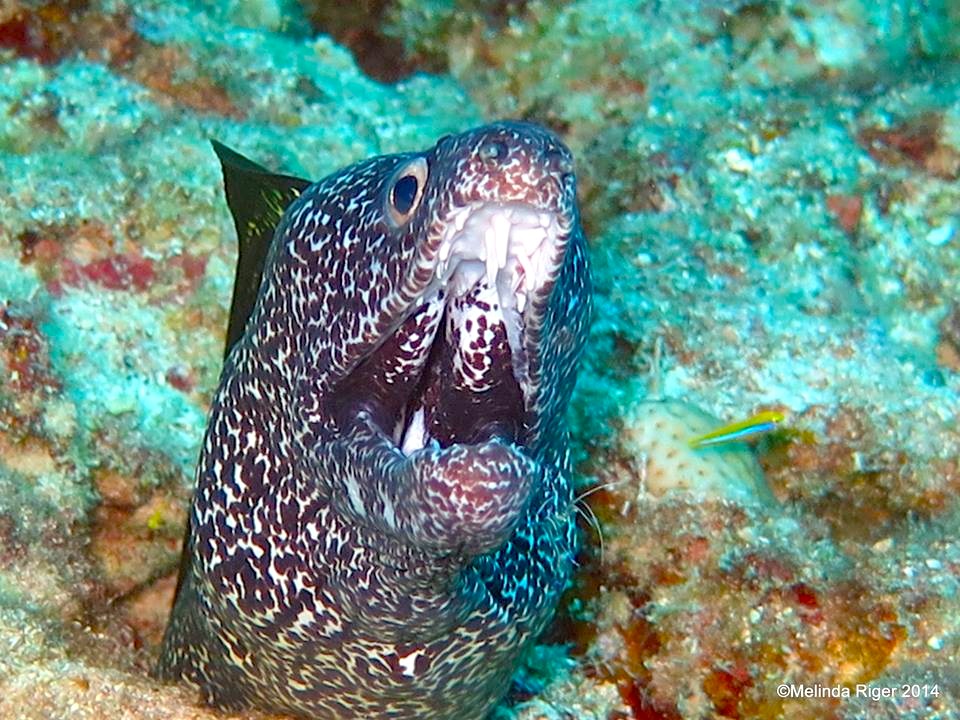 These photos of M. Riger’s are unbelievable! Fantastic close-ups, looking right down their scary little throats. Awesome colors in your Abaco waters too, RH. 🙂