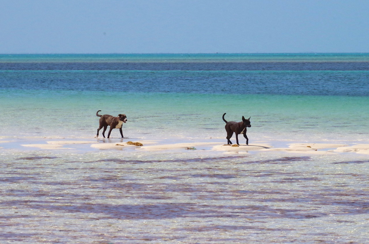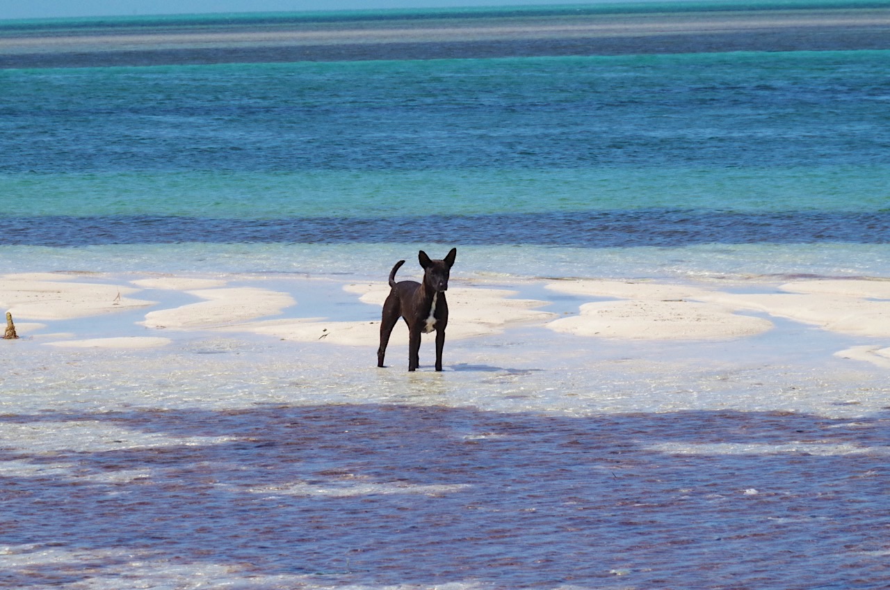 The potcakes of Sandy Point make the beach and the sea their playground. If you walk along the strand and round the point, they may tag along for a while. Then they get bored and rush off. When the tide is low, they will trot along the exposed sandbars right out into the sea. Or chase each other into the sea. Or maybe just relax and watch an endemic Bahama swallow flit past.