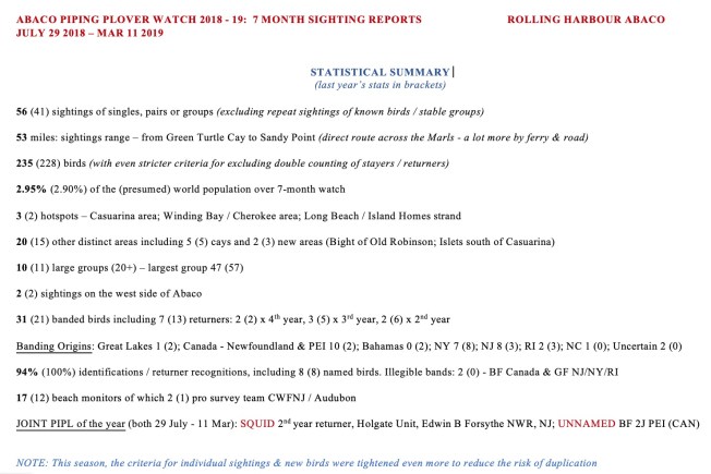 - BE A BEACH MONITOR IN THE CAUSE OF RESEARCH AND CONSERVATION OF A TINY RARE BIRD THAT CHOOSES ABACO FOR ITS WINTER HOME