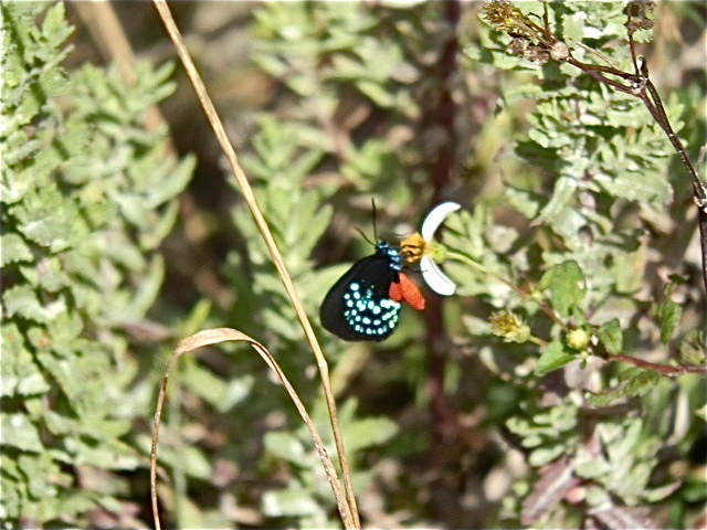 Kasia has recently sent me photos of the regenerated vegetation in the pine forest along the drives, following the major wildfires last March. I’ll post some comparative pictures soon. During her circuit, she took some other photos including the two butterflies below. Of note is a vivid example of the Atala Hairstreak, my favourite butterfly, which I have never seen on the drives.