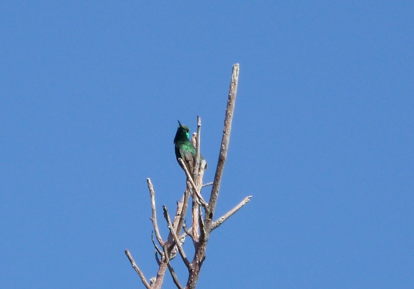 There’s probably a great deal to be written about the emeralds, but not by me. Or not now, anyway. The little you need to know from me is already covered above, and I haven’t yet discovered whether their childcare arrangements differ significantly from the woodstars. Probably not. So I’ll put in a selection of photos, and remark that it is strange how quickly they can change from sleek and slender birds to small rather cold and dispirited looking bundles of feathers. Both states are depicted below. And here’s what to listen for: (credit Xeno-canto.org)