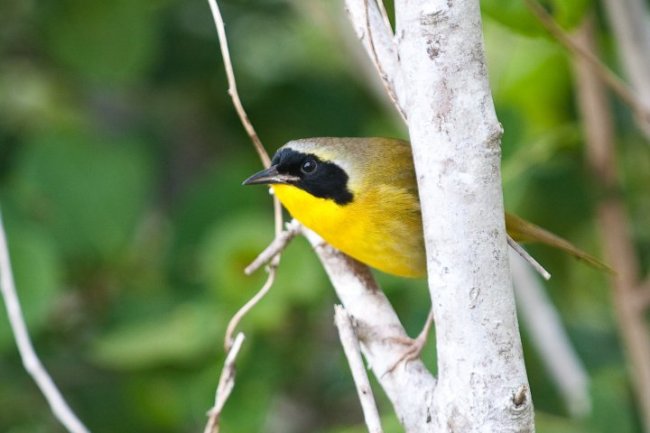 HABITAT Dense low scrub, usually in drier areas than used by wintering Common Yellowthroats. It builds a cup nest low in dense vegetation and lays two eggs. Like other yellowthroats it feeds on insects and other small invertebrates in low vegetation