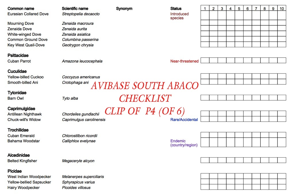 AVIBASE CHECKLIST OF THE BIRDS OF SOUTH ABACO
