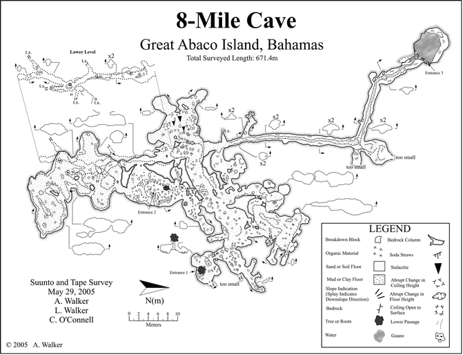 Credits: Hitoshi Miho, Brian Kakuk, Bahamas Caves Research Foundation, with many thanks as ever for use permission; A. Walker (8-Mile Cave map_