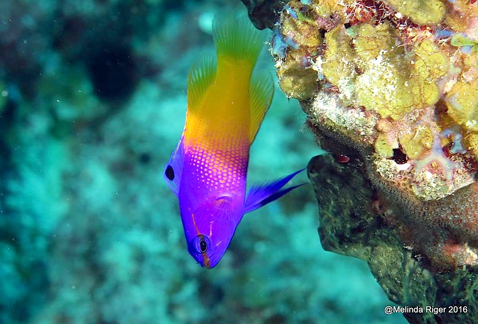 You’ll notice that the basslet above appears to be upside down. Which is because it is – this isn’t an inadvertent photo-flip. These little fish tend to orientate themselves to be parallel with the closest surface. This leads to them happily swimming upside down, or aligning vertically. As one article I read says severely, “this behaviour is not to be mistaken for illness”.