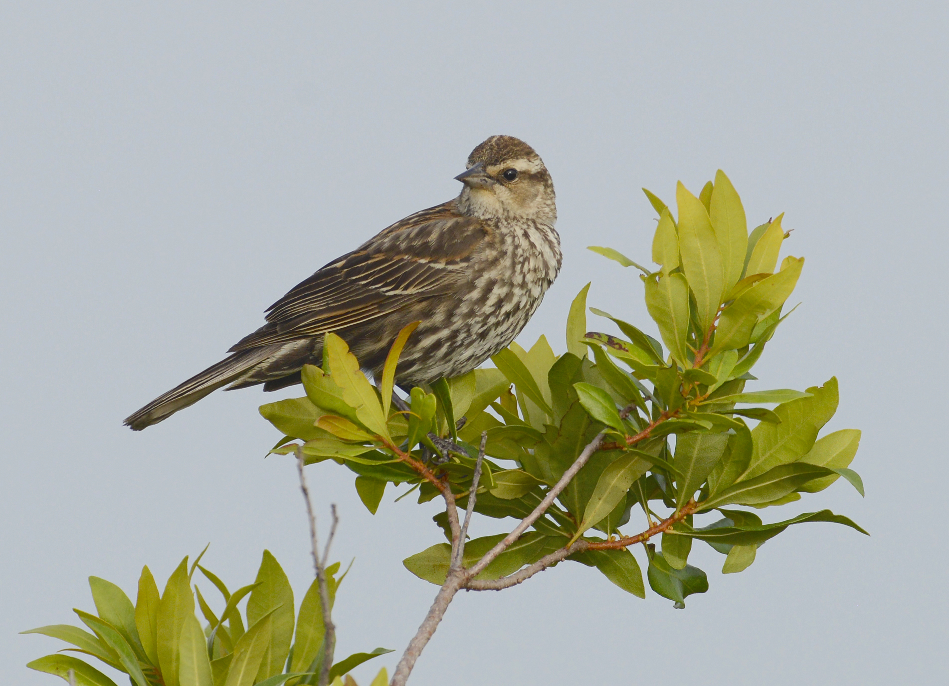 The sounds are unmistakeable – a discordant chorus of soft chuckling noises like tongue-clicks as the RWTs flock into a bush, interrupted by harsh, metallic calls like rusty metal gate-hinges being forced open. Or maybe a lone bird mournfully repeating its eerie call from the mangroves far out on the Marls as the bonefishing skiffs slip silently along the shoreline. No other species sound quite like Agelaius phoeniceus.