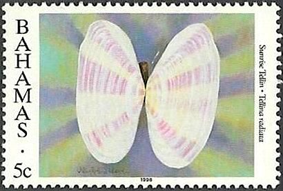 As ever, the very excellent Bahamas Philatelic Bureau has covered seashells along with all the other wildlife / natural history stamp sets they have produced regularly over the years. The sunrise tellin was featured in 1995. You can find more – much more – on myPHILATELYpage.