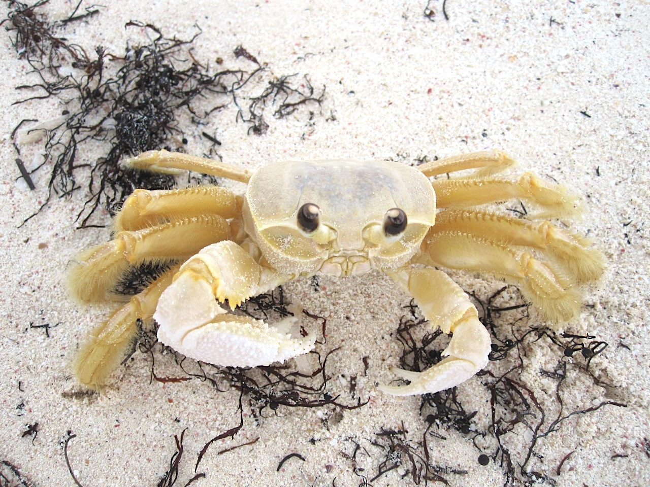 Let’s meet some Arrow Crabs Stenorhynchus seticornis, one of the very few creatures surely to have a triangular body plus a huge pointy nose (rostrum), supported on long skinny legs. To which add, they wear tiny blue gloves on their two front claws.