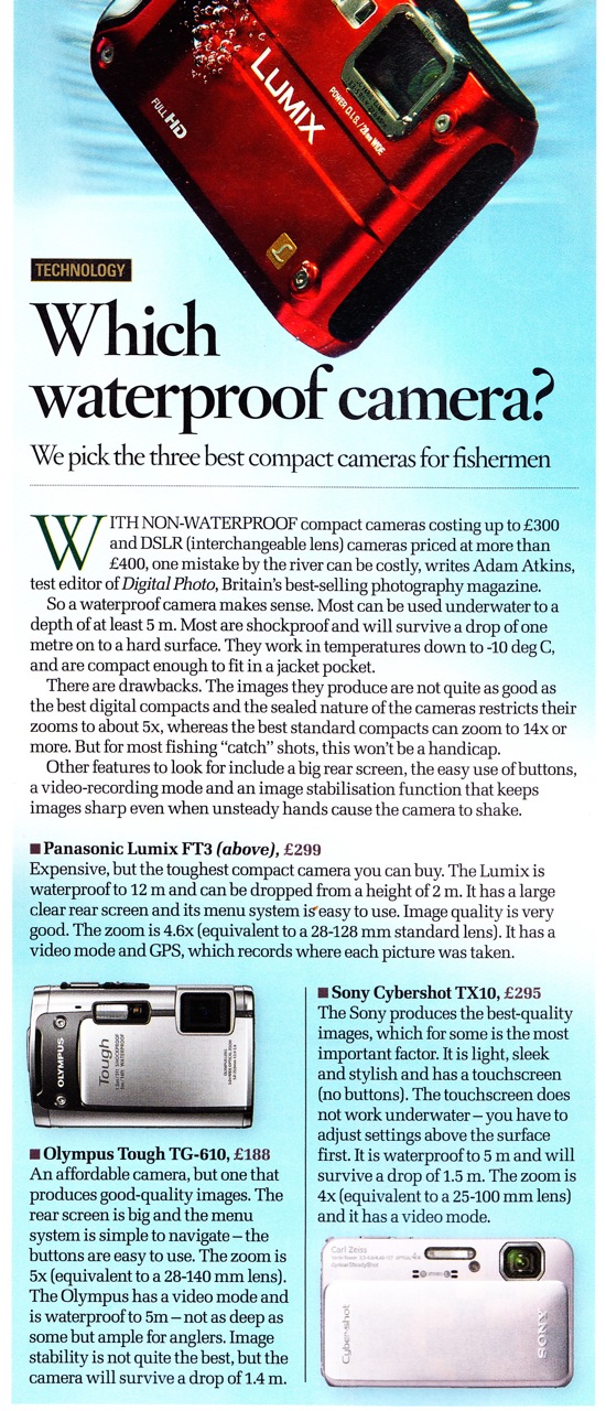 TROUT & SALMON NOV 2011: WATERPROOF CAMERAS REVIEW You’ll find details of an early version of a cheap and cheerful Kodak underwater camera at the end of the rollingharbour GADGETS page. This straightforward little camera is now into its third version at much the same price, and in due course I will update my original post.