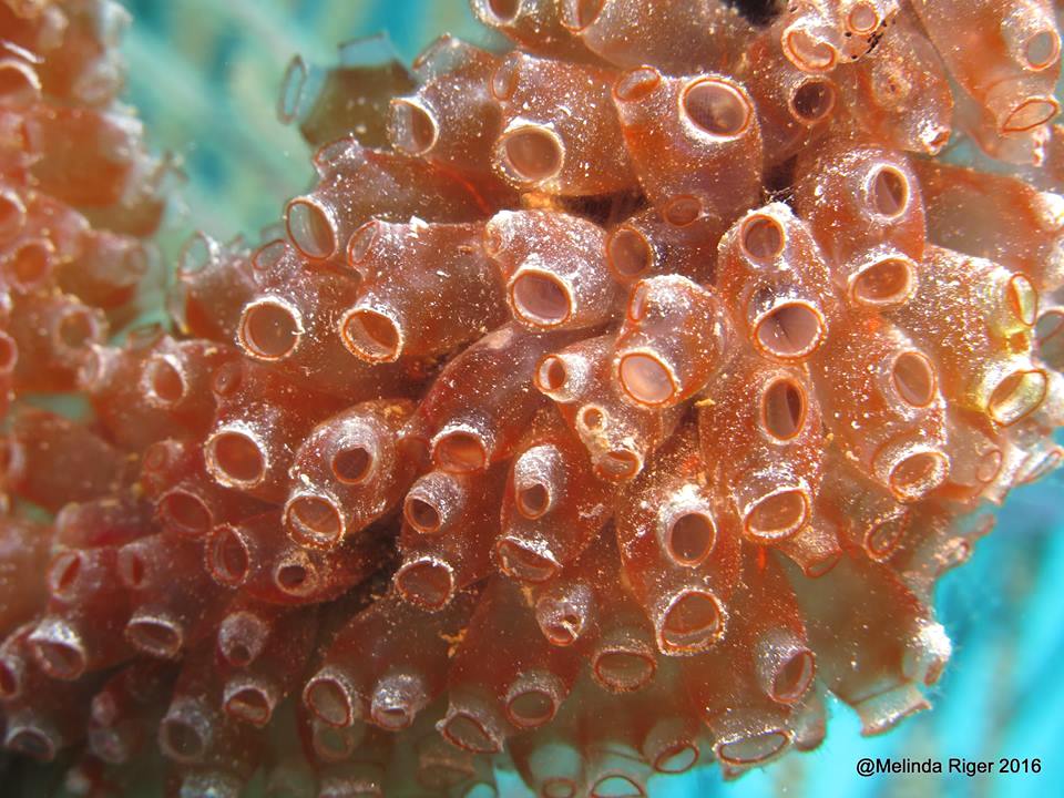 Painted Tunicates Clavina picta are one of several species of tunicate ‘sea-squirts’ found in Bahamas and Caribbean waters. These creatures with their translucent bodies are usually found clustered together, sometimes in very large groups. One reason for this is that they are ‘sessile’, unable to move from where they have taken root on the coral.