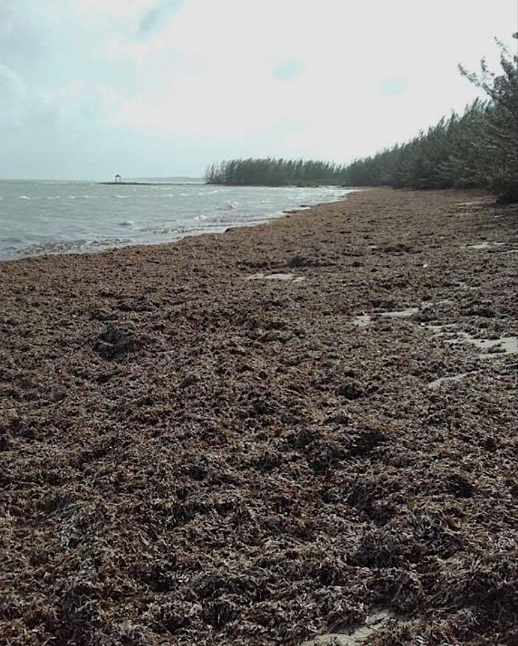 Seaweed covering the beach at Casuarina, AbacoHurricane Irma, Abaco