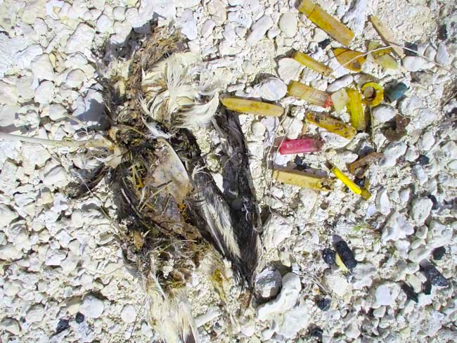 One of dozens of bird carcasses found to be full of plastic debris, including lighters
