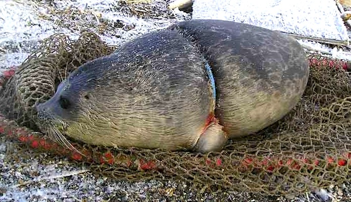 Someone chucked out their net – and caught a harbour seal… and other sad seals