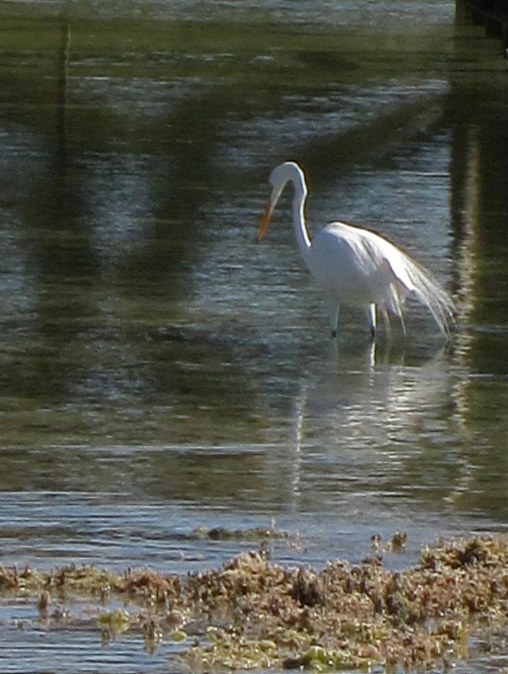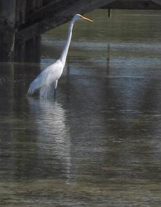 To the amateur (me) there is plenty of scope for confusion between the great egret and the great blue heron (white phase) – unless you can see the bird’s legs. The great egret’s are dark; the GBH’s are yellow. There are probably plenty of other distinctions that are completely obvious to a practised birder, but I think the legs are the easiest answer for the untutored enthusiast.