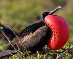 Bird Alert 4 After you have rounded the point, and if the tide is low, you will see plenty of waders on the sandbars. In fact, you can walk or wade out onto these for a closer look. However, also look through your binoculars at the more distant sandbars for an amazing sight if you are lucky: this spring there was a colony of frigate birds there, and the males were displaying. Basically, this involves a large black bird blowing up its throat and chest most alarmingly into a large red balloon. Presumably female frigate birds find this irresistible rather than terrifying…