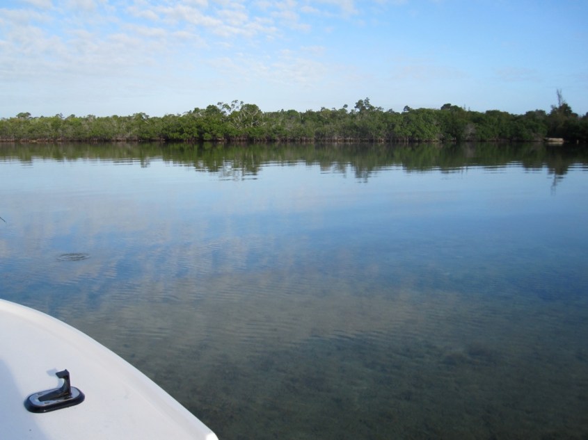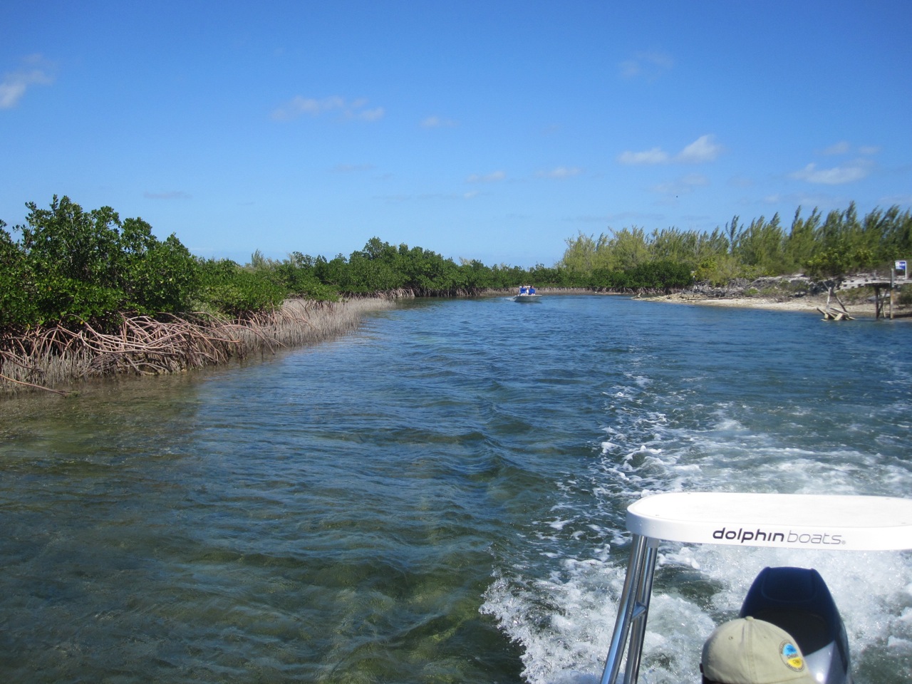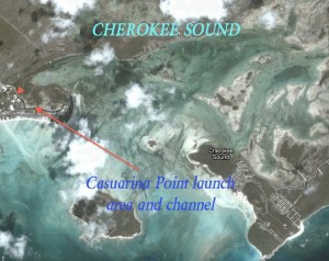 The launch point at Casuarina. A channel leads out to Cherokee Sound