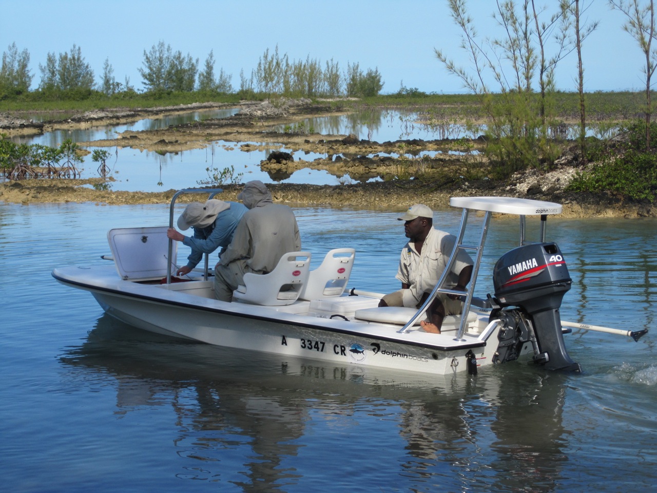 It’s 7.15 and breakfast time at Delphi. At 8.00 the trucks, skiffs, guides and fishers will set off to the fishing grounds for the day, leaving you with an empty beach, shells, warm sea, the pool, the hammock and your book. For the moment, the talk is of the excellent ‘Full Abaco’ breakfast, the weather, ‘Delphi daddies’ & ‘crazy charlies’ and someone’s mislaid reel. Sandy enters to announce that there’s a place free on your partner’s skiff… and offers it to you. So what should you, a non-angler, expect of a day out on the flats?