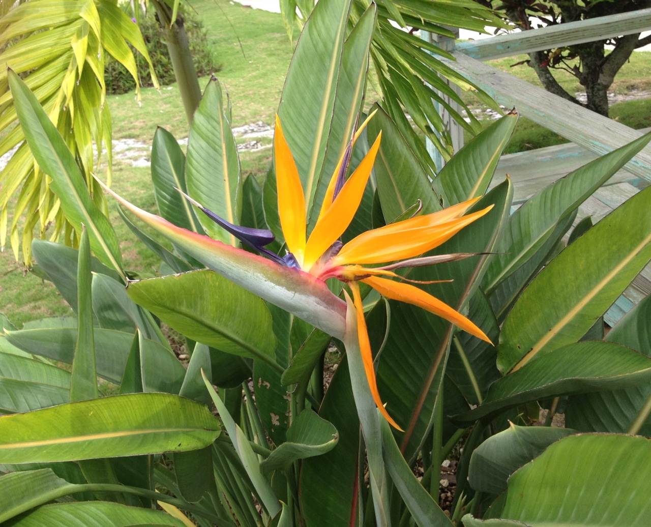 The Bird of Paradise Plant Strelitzia is a native of South Africa, but its exoticism and all-round fabulousness has ensured its export to other parts of the world with suitable climates. These plants can be found throughout the Bahamas, including Abaco. It’s fortunately a plant that is impossible to confuse with any other, an added attraction for non-floral people… Here are a couple of my images of the plant about to flower, and having burst into flower