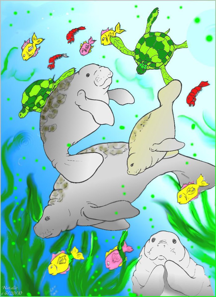 [ORIGINAL POST CONTINUES] The SMC is a Florida-based organisation and it recently posted a new cheerful cover picture by Natalie Prayor on its FACEBOOK PAGE. I have recently noticed some searches on the blog such as ‘Manatees facts for Kids’, so this post might be helpful. You could even (I can’t believe I even thought of checking this out!) knit one… Want a pattern? Click HERE In fact, I might even…