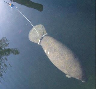 Other threats (1) Fishing gear: hooks, metal weights, and especially mono-filament line clogging a manatee’s digestive system; entanglement in fishing lines (2) water-control structures such as navigation locks and floodgates (3) drowning in pipes and culverts (4) bizarrely, there have been numerous reports people, when allowed to swim with manatees in Florida, harassing them