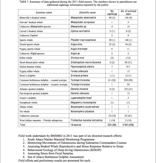 BMMRO WHALE & DOLPHIN SIGHTINGS ABACO JULY 2012