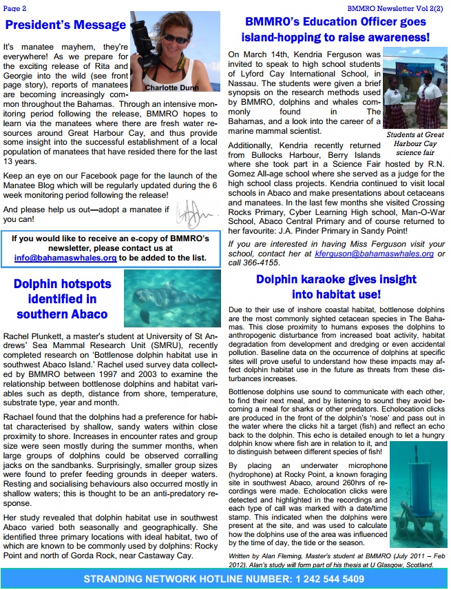 BMMRO WHALE, DOLPHIN & MANATEE SIGHTINGS ABACO / BAHAMAS FEBRUARY 2012