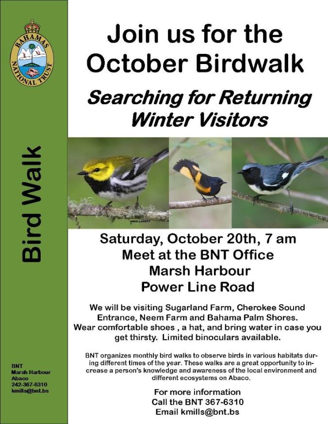 Abaco October Birdwalk – BNT – Marsh Harbour Published October 10, 2012 at 742 × 960 in RANDOM ← Previous Next → Like Loading...