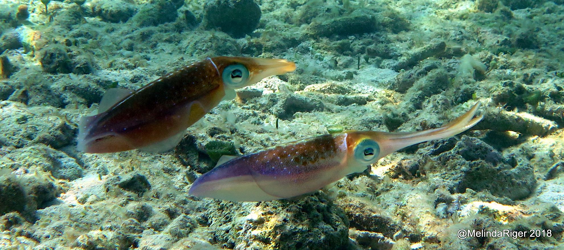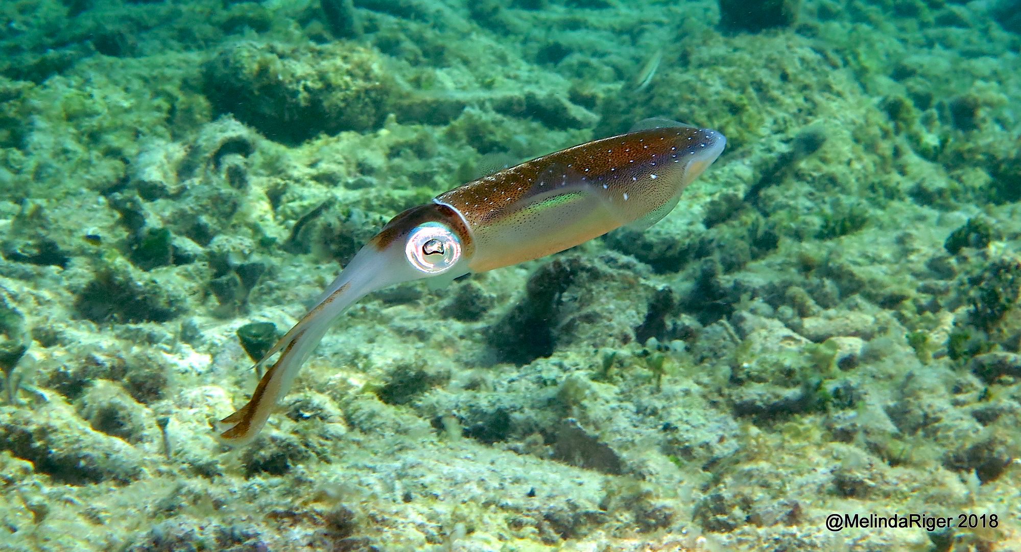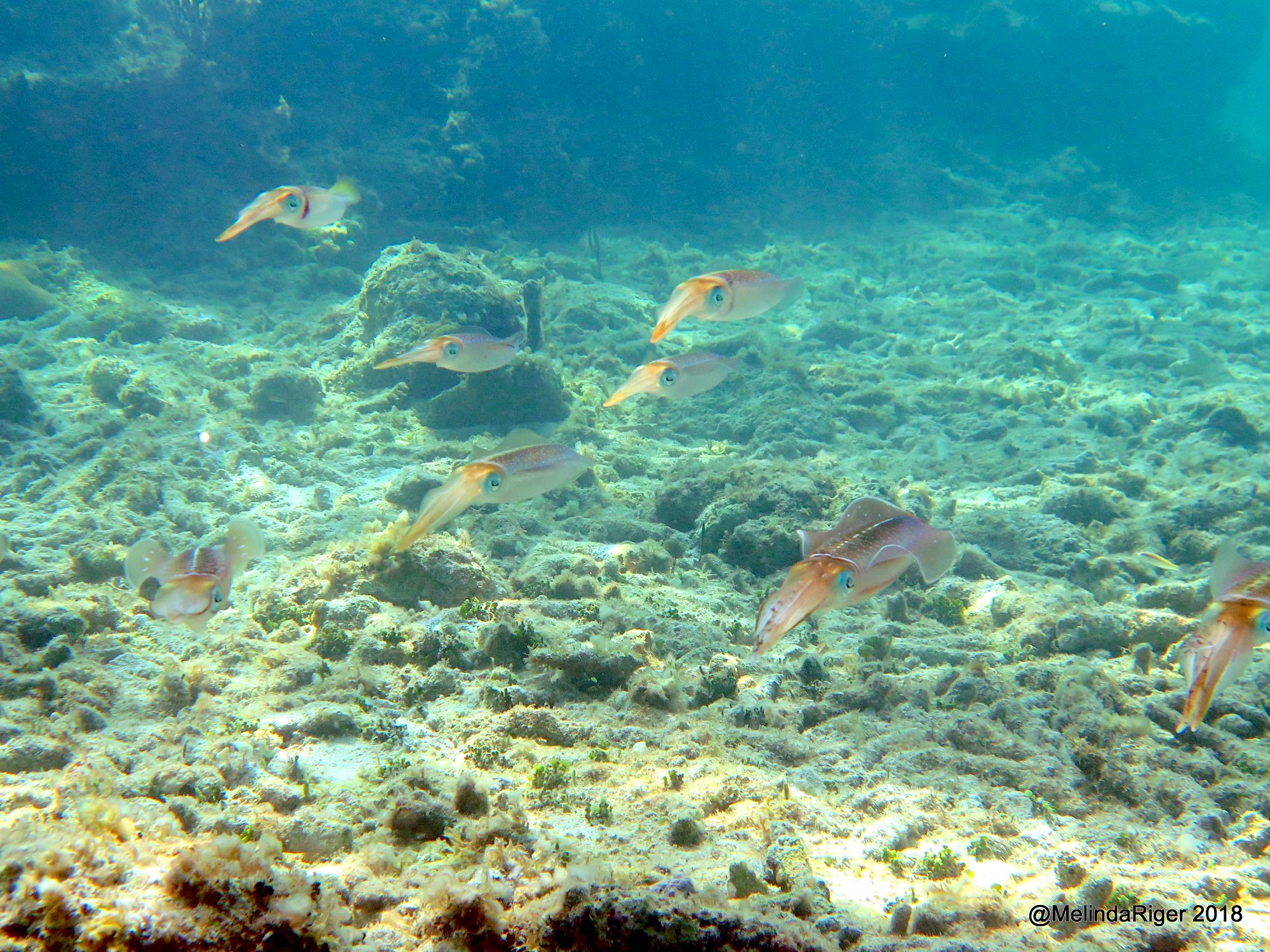 The Caribbean reef squid Sepioteuthis sepioidea is a small squid species of (mainly) the Caribbean Sea and the Floridian coast, and the most common in its range. These squid tend to form small shoals in and around reefs. From now on, and through the summer, would be a good time to investigate.