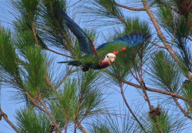 The work of scientists such as Caroline Stahala was (and still is) supported by local organisations such as Bahamas National Trust and Friends of the Environment Abaco. Local communities lent valuable encouragement and enthusiasm to the project. No one can fail to be uplifted by the sight of a flock of these parrots flying overhead, flaunting their bright green, red and blue feathers that flash in the sunlight. Even the sound of a flock squabbling in the trees like noisy children just let out of school is a joy. Here’s a sample, recorded at Bahama Palm Shores: see if you agree…