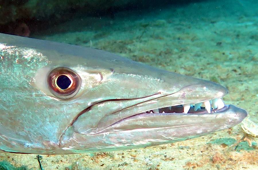 There’s no doubt about it, barracudas have a particularly unwelcoming look to them. They exude menace. There’s something about the torpedo shape, the primitive head, and the uncomfortably snaggle-toothed grin-with-underbite that suggests a creature not to be underestimated.
