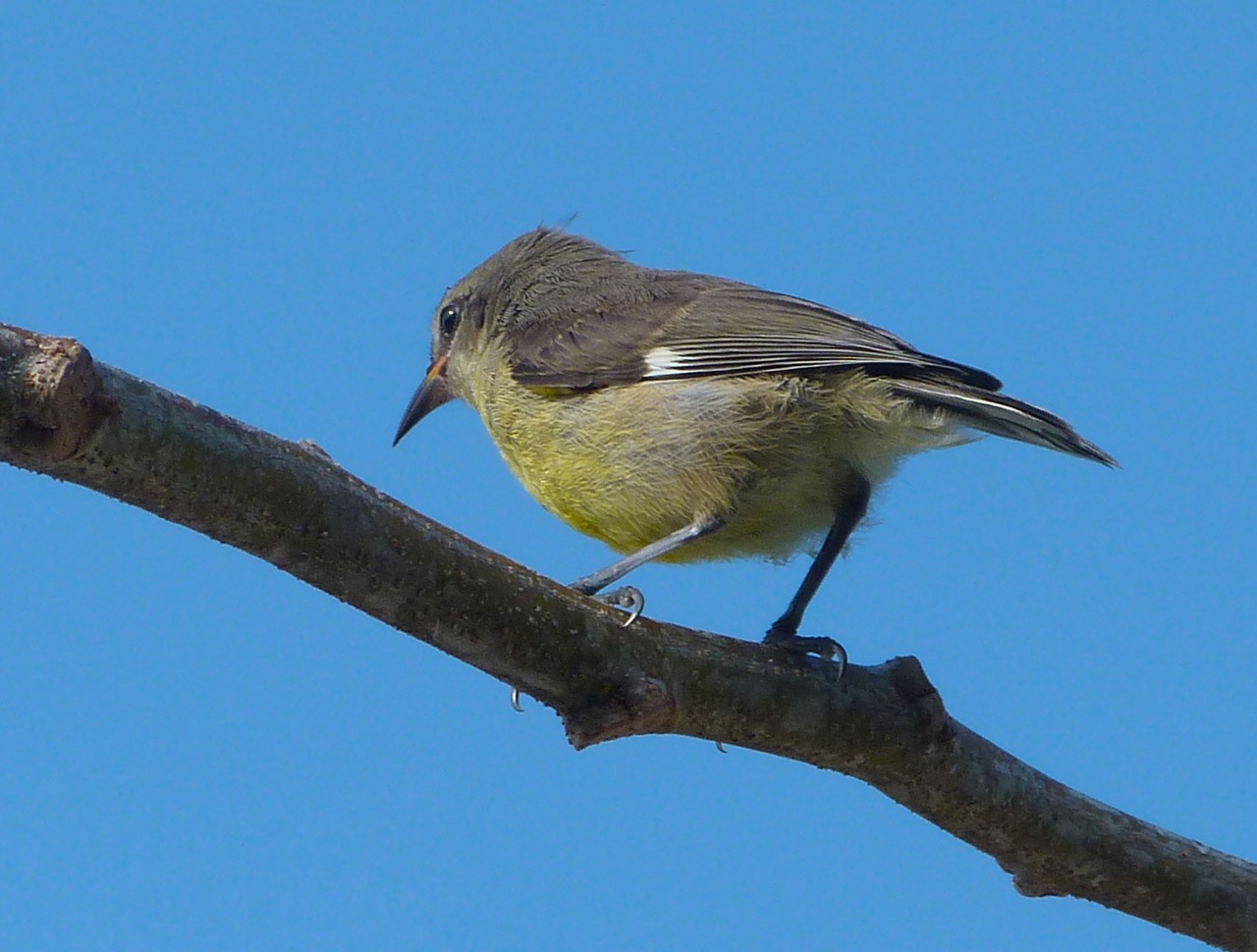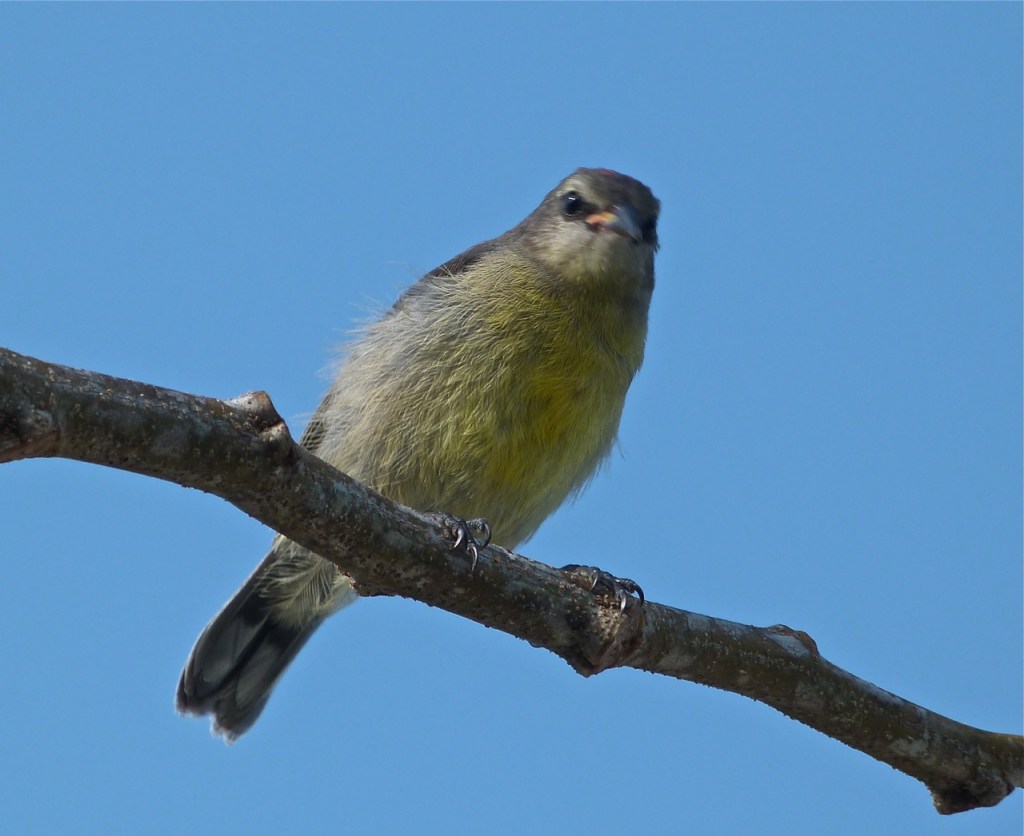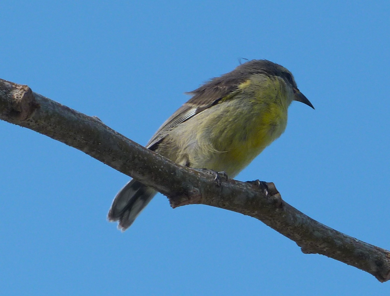 Finally, this bird was a distance shot. At the time, it looked larger than a bananaquit – more Loggerhead Kingbird-sized. Before I had downloaded the image and could see it clearly, I’d wondered about a mangrove cuckoo. Then I saw at once that it didn’t tick the right boxes. So I decided it must just be a huge bananaquit with an orange rather than yellow front. If it’s anything else (a rare hybrid spindalisquit?), please say so!