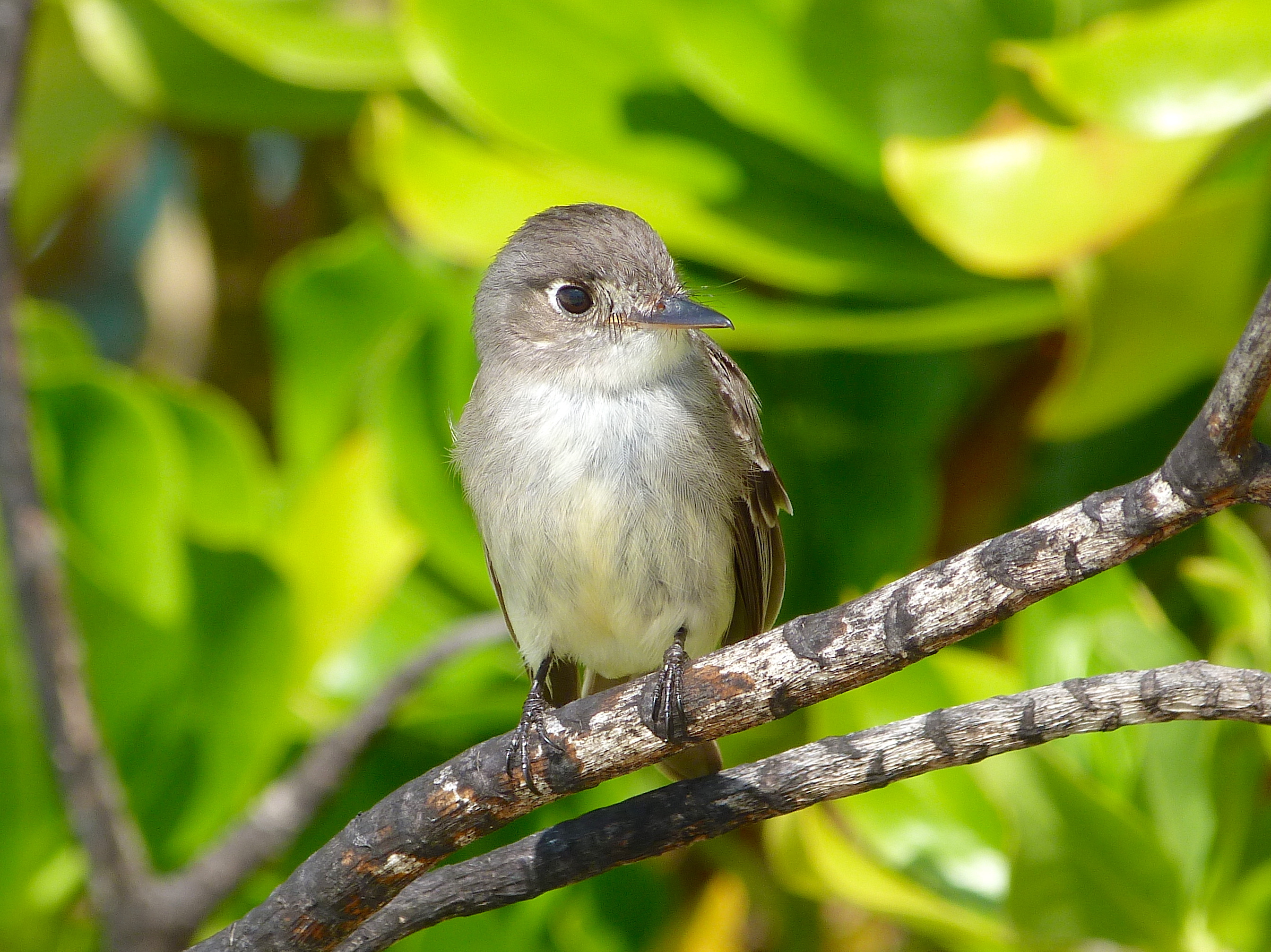 The range of the Cuban Pewee is limited almost entirely to Cuba and the Bahamas, so it is very region specific. And how lucky we are to have these cute little specimens on Abaco. I note that the Audubon site calls them drab, which I think is a little unfair. Merely because a bird is not decked out like a PAINTED BUNTING or startlingly marked like a male RED-WINGED BLACKBIRD does not make it drab. I prefer the word ‘subtle’. I like GRASSQUITS too, for the same reason: too often maligned as ‘dull’.