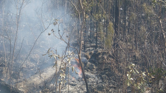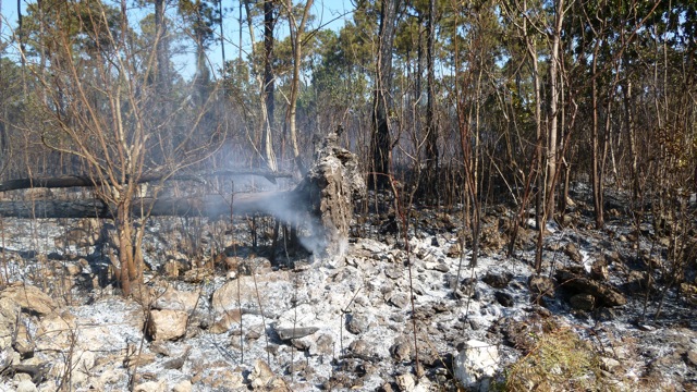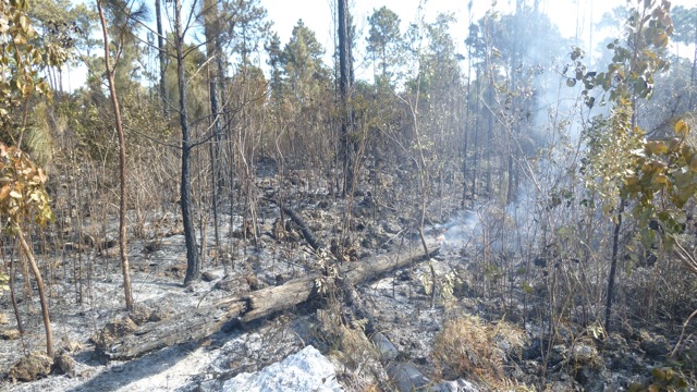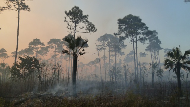 Later, we went back to Sawmill Sink at a time when the south part of the island was enduring the annual outbreak of forest fires, some natural and some set to clear undergrowth. While the occasional natural fire is actually good for regeneration of a forest (cf burning moorland), a fire out of control and fuelled by wind can very quickly damage a vast area. Thick palls of smoke drift across the island and out to sea. Even while we were fishing far out on the Marls, flames were visible as tall pines burned, with the acrid smell of the blaze was carried on the wind.