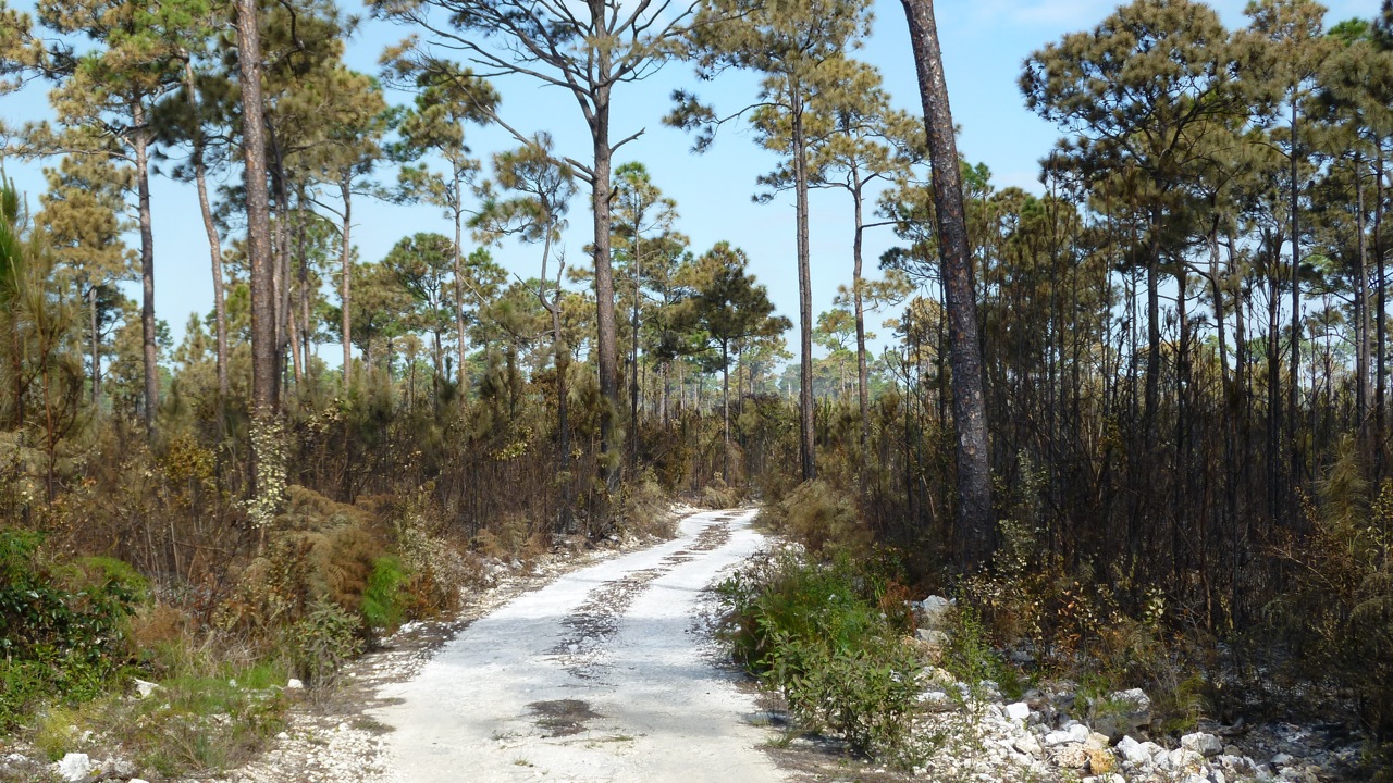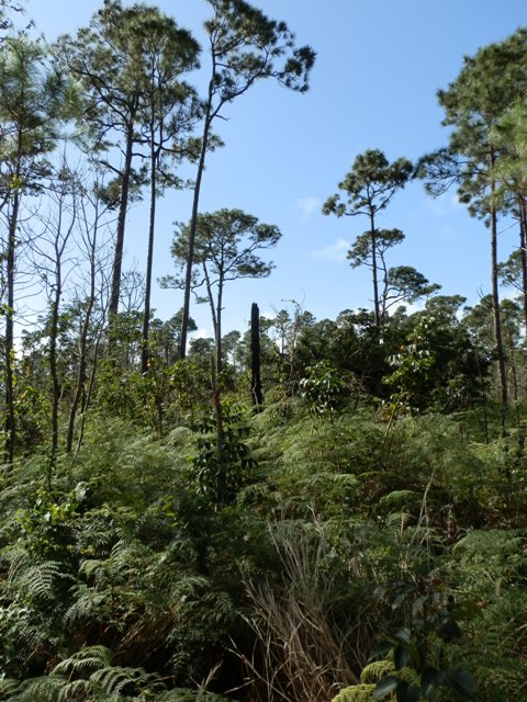 South Abaco – defined loosely as the area south of Marsh Harbour – is dominated by pine forest. There are a few settlements and individual residences, all by the coast. The forested swathes are criss-crossed by an extensive system of logging tracks, many now all but impassable. They are reminders of Abaco’s historic importance as a source of wood deriving from the ubiquitous tall, slim pines. One use to which they were put was as mine pit props in the collieries of Wales.