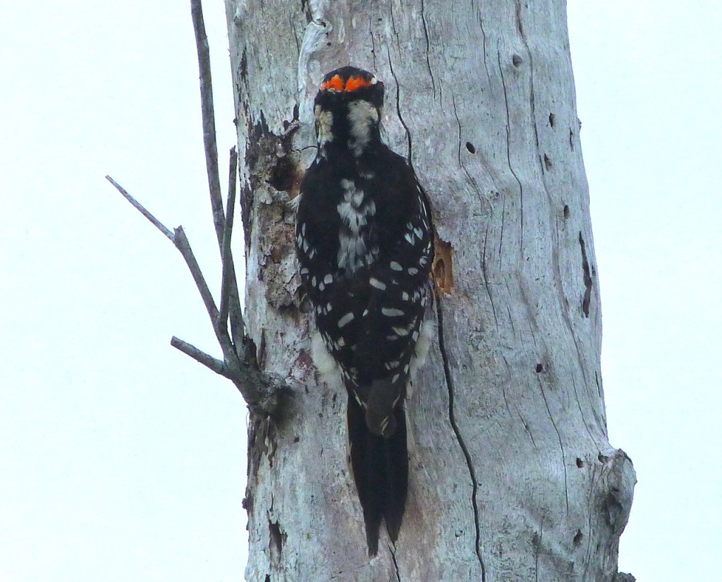 During your stroll, it’s worth checking out the dead trees, especially the upper trunk and branches, as you go. For a start, these provide excellent places for birds to pause and scope out the territory below. They also have a good chance of finding insects there. And for some species, like the Hairy Woodpecker Picoides villosus, it is home.