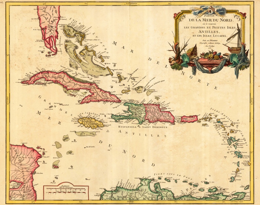 A 1750 map by Robert of Paris shows the southern tip of Abaco as ‘Trou dans le Roc’. You’ll have to trust me on this – the writing is tiny and impossible to enlarge legibly. The French name is not just because the map maker was French, but probably because it was the name given by French settlers who are believed to have lived in that part of Abaco in the c18 (and quite possibly earlier). Many more settlements are shown, especially on the Cays.