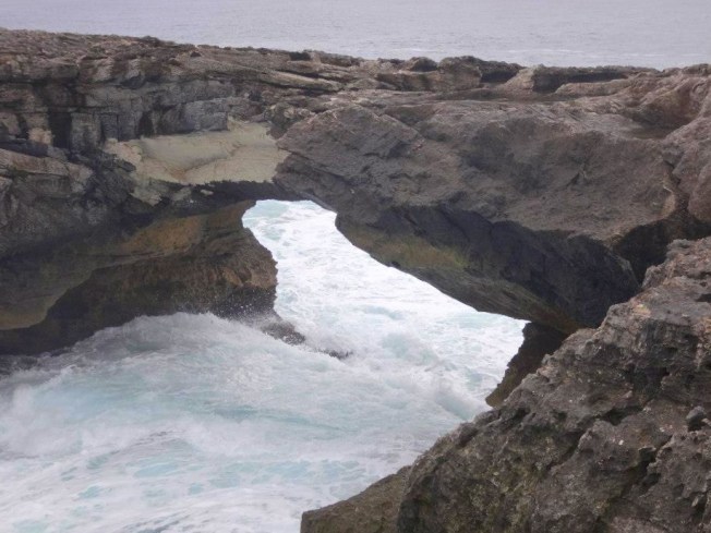 “At first the hike was easy as we followed a cement path through a maze of sea grapes and then hiked further down until we reached the beach. We took a left at the beach and started hiking across limestone that was full of potholes and sharp edges. We walked carefully through the maze until we reached a point where we could finally see the Hole in the Wall.