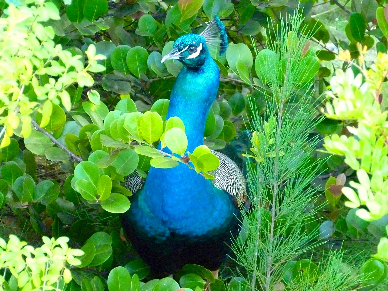 As with many other transferred species, birds inevitably escaped from their ‘owners’ and feral populations soon became established. In Abaco terms, this is exactly what happened with the peafowl that were brought to the ‘Different of Abaco’ fishing lodge. The birds survived its demise, lived and bred in the increasingly wild grounds, and are now many generations on.