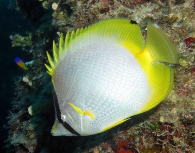 Reading about this particular species of butterfly fish, I discovered that the spotfin “is very common and very hard to maintain in a tank” – as if the two facts are somehow connected. So might they be coarse or vulgar, and thus unsuitable companions for better bred and perhaps sensitive aquarium fish? As it turns out, it may be because they are vulnerable to predation, and so can coexist only with peaceable tank friends.