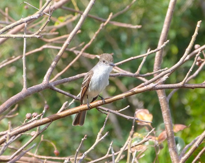 LA SAGRA’S FLYCATCHERMyiarchus sagrae is one of 3 permanent resident ‘tyrant’ flycatchers found on Abaco, the others being theCUBAN PEWEE and the LOGGERHEAD KINGBIRD. In the summer, they are joined by another commonly-found species, theGRAY KINGBIRD. There are other flycatchers, but they are seasonal, transient or vagrant, and far less common.