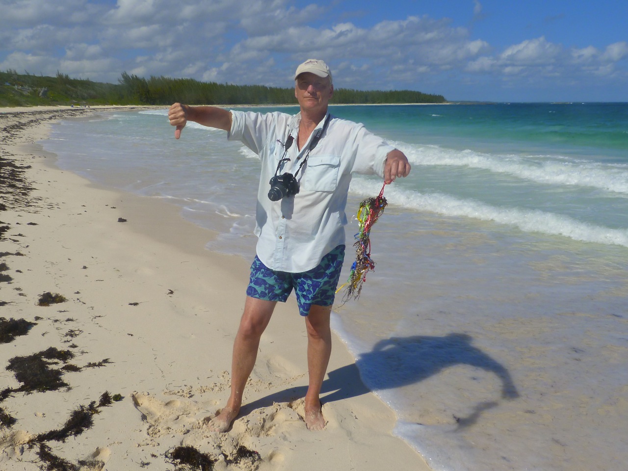 I’ve just got one point to raise, if you wouldn’t mind. There’s a mass of plastic (and other) crap out there on the beaches. It washes in on every tide. I know it isn’t Bahamian crap, but has come from many miles away. But Mr Harbour has done some work with my portrait to identify what’s in the seaweed I’m feeding on that might be harmful. He enhanced it and picked out just the things he’s certain shouldn’t be there. All the blue bits, for a start. And who knows what else is under the weed that I can’t even see to avoid. The shoreline and the wrack line is my dining area. I might easily eat some of the small bits by mistake. I think I must do that quite often. That would be bad – too much plastic crap and I’ll be ill. Or die. There are only about 8000 of us in the whole big wide world. If 80 of us die from plastic ingestion, that’s one per cent. The loss has to be made up next breeding season before we can even begin to increase our population.