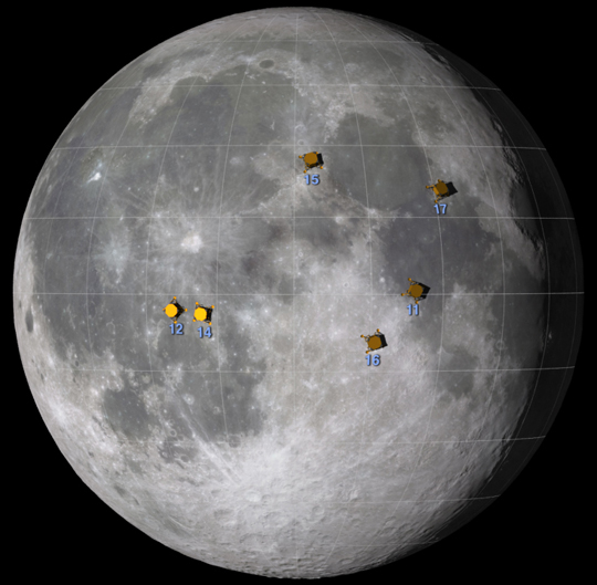 And what of all the other Apollo landings? Did they all aim for the same spot where Neil Armstrong staked his claim for mankind? Or were other landing areas tried by the Apollo moon missions? NASA has the answer: