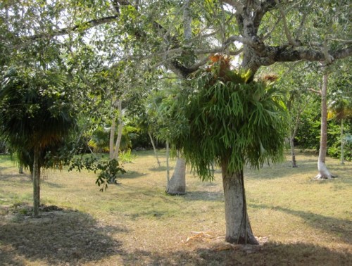 If you look at the base of the trees in certain places, especially on the the left hand side of the guest drive (facing the highway), there are some small but deep holes in the limestone. If you drop a stone in, you can hear it splash in water – and the ferns growing inside them suggest a continuously moist environment.