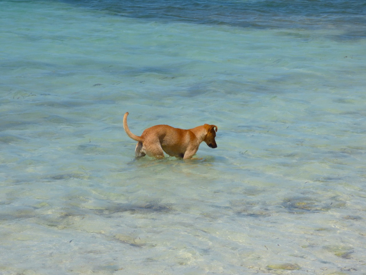 The potcakes of Sandy Point make the beach and the sea their playground. If you walk along the strand and round the point, they may tag along for a while. Then they get bored and rush off. When the tide is low, they will trot along the exposed sandbars right out into the sea. Or chase each other into the sea. Or maybe just relax and watch an endemic Bahama swallow flit past.
