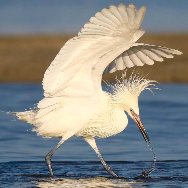 The trouble with reddish egrets is simple: they come in two colourways. There’s the conventional one which is indeed reddish, as one might hope and expect. Then there’s the snow white type (or ‘morph’). That’s the one featured here (with the other dark variety below, for comparison).
